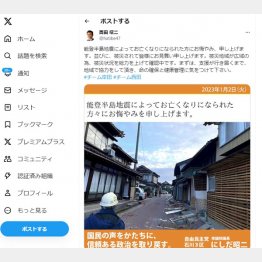 岸田首相側近の西田昭二議員「自らの命の確保と健康に努めて」地元・能登半島地震SNS投稿に反発広がる
