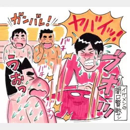 2セット目はラドル3杯。体感温度がググッと上昇。実は関口さん、熱さが苦手で「ヤバイ!」と苦悶の表情を浮かべ、大ウチワで熱波を送る。汗だくで奮闘する姿に、「ガンバレー」と声援を送る客もいれば、逃げ出す客も次々と。