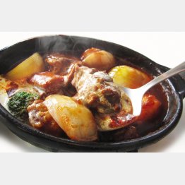〈エビアンで煮込むと牛肉は柔らかくなり、じゃがいもは煮崩れしない〉