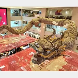 宙を舞う超巨大な竜。10日に旧正月を迎えた香港のショッピングモール「屯門市広場」で先月24日、披露されたものだ。