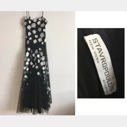 写真は1枚目が白いドレス、2枚目はシャネルのタグ。3枚目は白い花模様の黒いドレス(写真左)、4枚目(同右=共にレディットから)には「スタブロポロス」というタグが写っている。彼女が見つけたのはジョージ・スタブロポロス(1920~90年)という伝説的デザイナーの服だった。