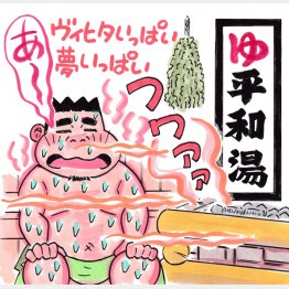 浴場の天井も高く、天窓から光が差し込む。桜の時季はもう少し暖かくなって、さらに気持ちよさそう。ペンキ絵のコイや金魚も、何となくうれしそうに見える。