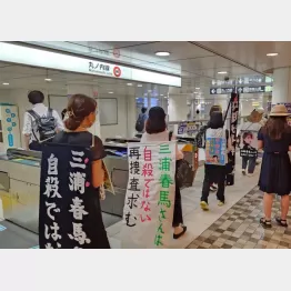 警視庁に向かう地下鉄移動の際も、一行は「三浦春馬さんは自殺じゃない」と印字されたTシャツを着て、サンドイッチマンよろしく体の前後に主張を書いた紙を垂らしたまま。車内や改札口付近で乗客たちが迷惑そうな表情を見せていた。