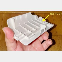 家電リサイクル法では、再プラを家電に使用することが義務付けられていますが、問題は、再プラは一度色付けられたプラスチックが原料であること。多くのプラスチックの元色は無色透明、ABS樹脂は薄いベージュです。それに塗料で色を付けます。再プラは原料の塗料が影響して多くの場合、色が濁ります。このため家電では人目に付かないパーツなどに使われる。強度も少し弱くなります。場合によっては、補強(リブなど)を加え、強度を保ちます。
