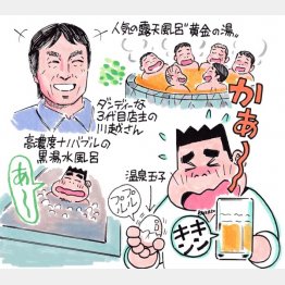 服を着てフロントで生ビール500円を購入。おっ、カウンターで1個50円の温泉卵を見つけてもちろんゲット。皮をむき、プルプルな卵に塩をかけてパクリ。キンキンに冷えた黄金液体でコクのある黄身が胃に落ちていく。く~っ、ウミャイ!