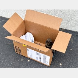 写真がその男性が持ってきた段ボール箱。確かにピンを外して投げるタイプのパイナップル形手榴弾が見える。