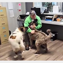 写真は退院後、ヒーロー(左)と、トラ(右)に再会したアランさんだ。