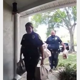 3月26日、米フロリダ州タイタスビルに住むジョー・ニューさんの自宅インターホンの呼び出し音が鳴った。監視カメラのディスプレーにはタイタスビル市警の女性警官の姿が。