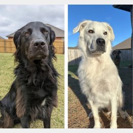 写真(レディットへの投稿から)の黒い犬と白い犬、驚いたことに同一の犬で、約2年半でこうなったそうだ。左が2021年11月、右が今月撮影したもので、米ネット掲示板レディットで話題になっている。