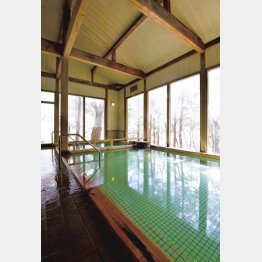 人里離れた場所に隠れ家のようにある秘湯「八千代温泉 芹の湯」。素朴なたたずまい。明かり取りの窓からほのかな光に照らし出された浴室の風情がいい。