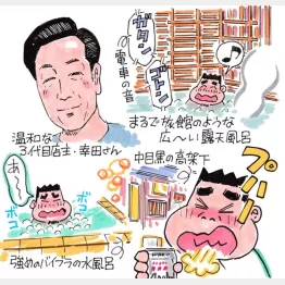 水風呂後は露天フロアの椅子に座って脱力状態で涼風に癒やされた。電車のガタンゴトンを間近に聞きながらの外気浴は趣があって面白い。