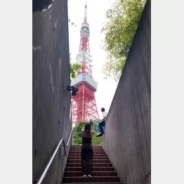 写真はそのひとつ。東京タワーの南側にある地下駐車場入り口のとある階段だ。狭いスペースから巨大なタワーが見え、以前から日本人の間でも知る人ぞ知る撮影スポットだが、1年ほど前に海外のインフルエンサーが取り上げ、外国人が殺到するようになった。