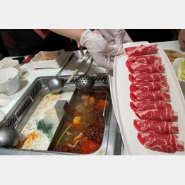 「スープが沸いたら、小皿に白湯をすくってタレコーナーから持ってきたパクチーを振りかけてすすると、フレンチでアペリティフを飲むように胃が動き始めます。そして羊肉などは激辛に、野菜は白湯にひたしていただくのがセオリーです」