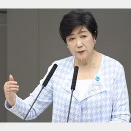 「まずは議会にしっかりと取り組んでいくことが現職の務め」──。29日の本会議終了後の会見で、出馬表明の時期を問われた小池知事は、そうはぐらかした。イメージカラーの緑ではなく水色の千鳥格子柄のジャケットに身を包み、「行政は継続してこそ力なりってあります」と3選出馬へのにおわせも忘れなかった。