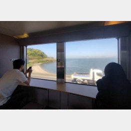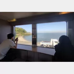 車内にはトイレはもちろん、洗面台やシャワーも完備。3号車と10号車にはラウンジがあり、カップルや家族連れなどさまざまな人でにぎわっている。電車が静岡県に入った午後11時ごろ、お酒で顔を真っ赤にしていた40代男性に話を聞いた。