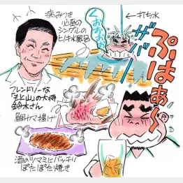 施設を後にし、駅北口すぐの「寿し もと山」へ。カウンターに座り、角ハイボール550円でのどを潤す。大将の鈴木恒人さんにオススメを聞くと、「ネギトロ2貫を秘伝のタレで照り焼きにした“ぽたぽた焼き(500円)”だよ」という言葉にウマさを直感。鯛カマ揚げ580円とともにお願いした。