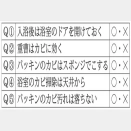 (答え=× 正解率50%)一度であきらめず、繰り返すことで落とせる場合がある。ただし、長期間放置してカビ汚れが落ちなくなってしまった場合はパッキンを取り替えるしかない。