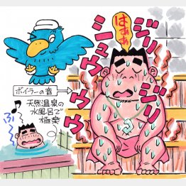顔面にジリジリとくる熱さで深呼吸すると、かすかな鼻のチクチクが心地よい。12分計3分で玉汗が浮かんできて、6分で汗ダラッダラ。でも、まだまだ頑張れるぞ。時々、「シュウウ」とうなるボイラー音にテンションを上げ、1セット目は10分で退室した。