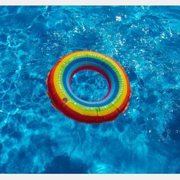 虹色の浮き輪をつけた男性がプカリプカリと浮かんでいたのだ。
