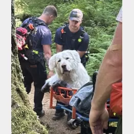 米オレゴン州サドルマウンテンの山中で7月12日、飼い主と一緒にハイキングをしていた大型犬グレートピレニーズが足にひどい裂傷を負って歩けなくなり、立ち往生。地元の複数の消防署が救助隊を編成して、体重約73キロの大型犬をストレッチャーに乗せて下山した。