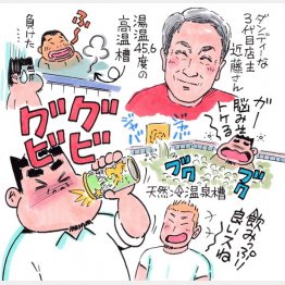 着衣後、フロントで缶発泡酒190円を購入。夕焼けに映える富士山の大きな絵画の飾られた広いロビーでグビッグビ。「飲みっぷり、いいっスね~」とサ室にいた腹筋バッキバキの兄ちゃんに笑われた。「昔はラグビー部やアメフト部の体育会系の学生たちが練習後、ウチで汗と泥を流していたんですよ」と3代目は目を細める。昭和の風情を残す穴場銭湯です。