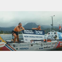 この世界で最も過酷な手漕ぎボートのレースを主催した「ワールズ・タフェスト・ロウ(WTR)」によると、記録は37日11時間43分。女性による既存の世界記録をなんと9日も短縮したばかりでなく、男性の世界記録よりも2日間も速い驚異的なものだった。写真は、世界記録更新に大喜びの2人だ。