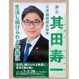 其田容疑者は五所川原市出身で立命館大大学院を修了後、11年にわたって伊吹文明元衆院議員の公設秘書を務めた。今年2月に次の衆院選で青森3区からの出馬を表明。自民党籍を持ちながら無所属で臨み、裏金事件に対する党の対応を批判し「真の保守として自民党を変える」と息巻いていた。