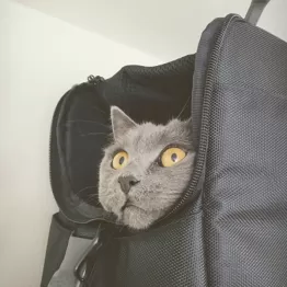 避難が必要な場合にネコちゃんのキャリーケースは飼育頭数分を。最近はプラスチックの窓つきタイプが人気ですが、災害時に広い視野で外が見えるのはネコちゃんに不向きでしょう。デザイン性より重視すべきはケースの軽さです。ほかの避難グッズと一緒にネコちゃんを抱えたり、背負ったりするのは大変ですから。小型犬のワンちゃんも同様に。