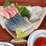 カンパチの刺し身(600円)がまだ残っているぞ。そいつで上撰菊正の常温(550円)といこう。アタシが座っているカウンターの向こうに4人掛けのテーブル席が4つほど。その上に神棚がある。軽く会釈し、菊正を口に含む。ピリッと辛めで刺し身にピッタリだ。