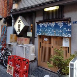 路地といえば新橋にもたくさんの路地がある。有名なところでは烏森神社裏の烏森宮脇通り。その周りにも路地が多く、いい酒場が並んでいる。この辺りは安くて手ごろな店もあれば、ちょいと高級なフグなどを食わせる老舗も混在している。だから客の大半は若いサラリーマンから管理職といった男たちが中心だったが、最近はそうでもない。若い男女も通っているようだ。今回の「大露路」もそんな店。開店時間の4時を目指して柳通りから横町に入ると大きく大露路と書かれた看板が見える。ガラリ。戸を開けるとすでに老若男女でほぼイッパイ。小さな店内は6人掛けのテーブルが左右に2つずつ。客たちはその4つのテーブルに当たり前のように相席で飲んでいる。