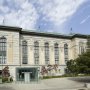 十和田市民図書館(青森県)中庭の2本の桜は四季の移ろいを感じさせる