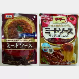 PB(プライベートブランド)を含めるとミートソースはレトルトだけで50以上あるようですが、今回は「オーマイ 合挽肉と香味野菜の旨み広がるミートソース」(ニップン)と「マ・マー トマトの果肉たっぷりのミートソース マッシュルーム入り」(日清製粉ウェルナ)を比較します。