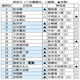 神奈川では、自民は20選挙区中14で劣勢だ。旧統一教会(現・世界平和統一家庭連合)との癒着が報じられた2人が苦しい戦いで、「マザームーン」こと山本朋広前議員は比例復活も危うい。