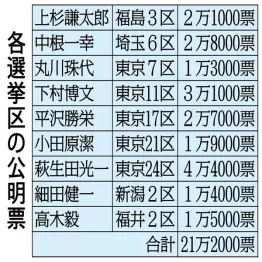 それぞれの選挙区の公明票を〈別表〉にまとめた。票数は、各地の選管が集計した前回2021年衆院選の各選挙区で公明が獲得した比例票を基に作成。合計で21万票超が消滅しかねない。