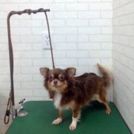話を聞くと、何かの刷り込みで興奮するとのこと。それが、リードをつけたり、トリミングで体に触られたりする行為のようです。そうだとすれば、気になることがありました。あくまでも推測ながら、トリミング台から落下防止でリードで柱に固定された状態で、叱られたりしたことがトラウマになったのかもしれません。