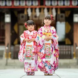 子どもの成長を祝い、健康や将来を祈願する行事です。男子は3歳と5歳、女子は3歳と7歳になった年に、晴れ着を着て氏神様などに参拝します。