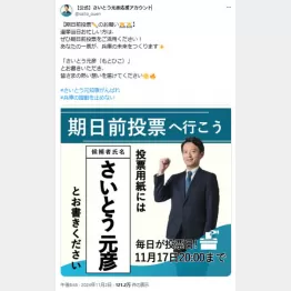 例えば、「兵庫の躍動を止めない!」というコピーや「#さいとう元知事がんばれ」というハッシュタグを考案。ポスターやチラシ、選挙公報の仕様については「デザインチームと日夜追求しました」と書いている。さらに、立ち上げたXの「さいとう元彦応援アカウント」は選挙期間中に「『さいとう元彦(もとひこ)』とお書きいただき、皆さまの熱い想いを届けてください」と期日前投票まで呼びかけている。