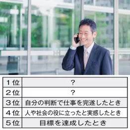 3位は「自分の判断で仕事を完遂したとき」だが、全体では5位。年齢が上がるにつれ、決定権をもつことが増えることと関係していそうだ。