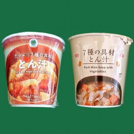 カップ入り「7種の具材とん汁」ファミマvsローソン 味噌の濃さやカロリーを比較