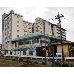 全国的に有名な旅館「加賀屋」も営業を休止している。建物の外壁をよく見ると、いくつもの「×」状の亀裂が入り、被害の大きさがわかる。