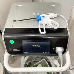 動物病院のHPやパンフレットなどには、手術の安全性をアピールしてこんなことが書かれています。この技術を可能にした医療機器が、超音波凝固切開装置です。超音波熱による摩擦で血管の端を接着し、切開ができる装置で、縫合の糸を使わず、手術時間を大幅に短縮して安全性も高いので、この表現そのものはウソではありません。