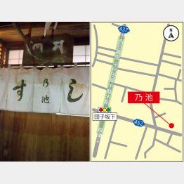 役者を目指していた乃池さんが、ひょんなことから寿司職人に。現在の店を創業したのが昭和40年。穴子寿司を目玉にしたところ大当たり。休日は穴子寿司を求めて行列ができる。でも、穴子ばかりじゃないよ、今度はお好みでやらせてもらおう。
