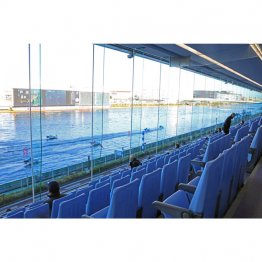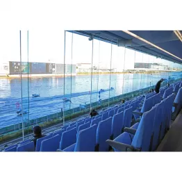 とってもキレイな場内のイチ押し“たたずみ”スポットは、総座席数2500席以上を誇る、一般スタンド席。全面総ガラス張りで広々としており、冷暖房完備。眺めも非常によく、コース全体を見渡すことができる。スタンドの好きな位置から、最高時速約80キロのド迫力レースを観戦できるから、ボートレースに詳しくない人でも行ってみる価値大アリだ。