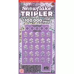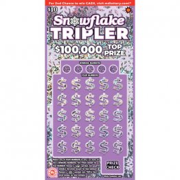 「スノーフレイク・トリプラー」というスクラッチくじ(写真=同州宝くじ当局公式サイトから)で、表面を削り、指定のマークや数字が一致すると賞金がもらえる。1枚10ドル(約1580円)で最高賞金は10万ドル(約1580万円)。