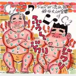 浴場を望む大きな窓から光を感じ、2つある5分計砂時計の1つをひっくり返す。じわじわとしたマイルドな輻射熱に体を包まれ、鼻の奥のチクチクも心地よく、2分ほどで全身玉汗状態。もう一度5分計をひっくり返し、7分ほどで汗ダラになりながら、ジャジーなサ活が楽しくて10分たっぷり満喫デス。