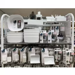 特に「ボトルホルダー」は重いシャンプーやリンスなどのボトルを3本収納でき、耐荷重は2.1キロと十分。ワイドタイプなので収納力が高い。価格は700円とそこそこするのですが、ボトルによっては4本収納できたり、洗顔フォームやクレンジングなども置けたりと便利。