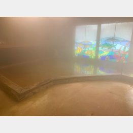 この壱岐市(壱岐の島)に2つしかない温泉地のうちのひとつが「いき湯川温泉」。源泉はこの施設だけという貴重な公共の浴場です。ステンドグラスが印象的な浴室には大きな湯船が一つあり、河童の湯口から源泉が惜しげもなく注ぎ込まれています。