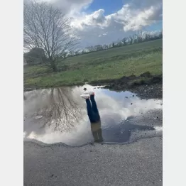 まるで「犬神家の一族」…英国の小さな町で8カ月放置された道路の陥没…“足”の設置で4日後に修復!