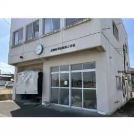 さらに6号を北に進み、駅方面に向かう県道を左折。すると、ベージュの外壁に「双葉町消防団第二分団」の文字が張られた建物が見えるが、金属製のシャッターが痛々しげに歪んでいる。これは、発災直後に救助に向かおうとした団員が、停電で開かなくなった電動シャッターを強引にこじ開けたために生じたものだそう。ガラス戸を隔てた室内には消防用のヘルメットや軍手が転がっている。外壁にかけられた時計は発災時の「2時46分」をさしたままだ。