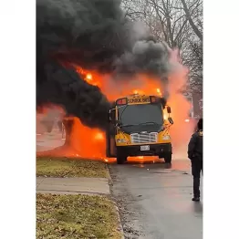 米オハイオ州クリーブランドハイツで2月27日朝、モンティセロ中学校の生徒15人を乗せたスクールバスの後輪部から火災が発生した。それを察知した運転手がすぐに生徒たちをバスから避難させて安全を確保。全員無事だった。